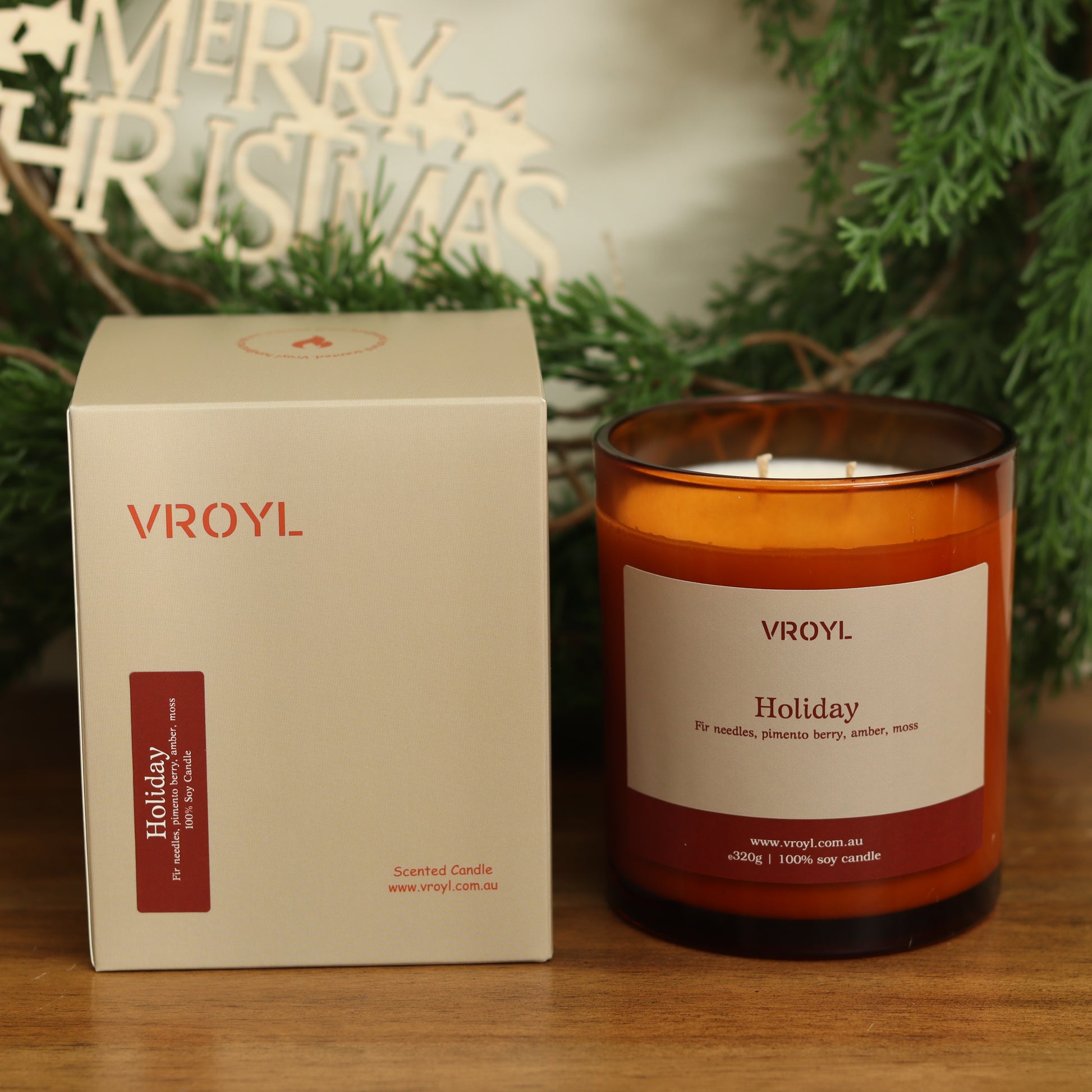 Inspired by classic holiday nostalgia with a unique vintage twist, blended with the intriguing notes of pimento berry and bay leaves, warmed by amber and moss.